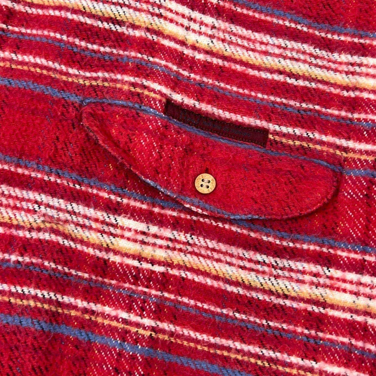 PAPAS パパス 木ボタン コーデュロイ切替 ボーダー 裏チェック 長袖ネルシャツ L/レッド